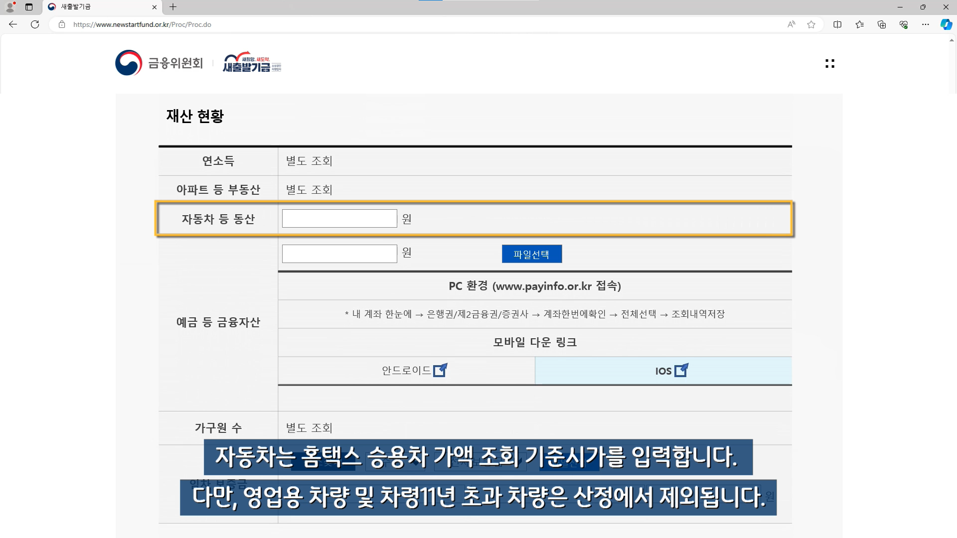 "파일 선택" 버튼을 눌러 금융자산에 대한 "계좌통홥관리서비스 조회내역서"를 반드시 첨부하셔야 합니다.