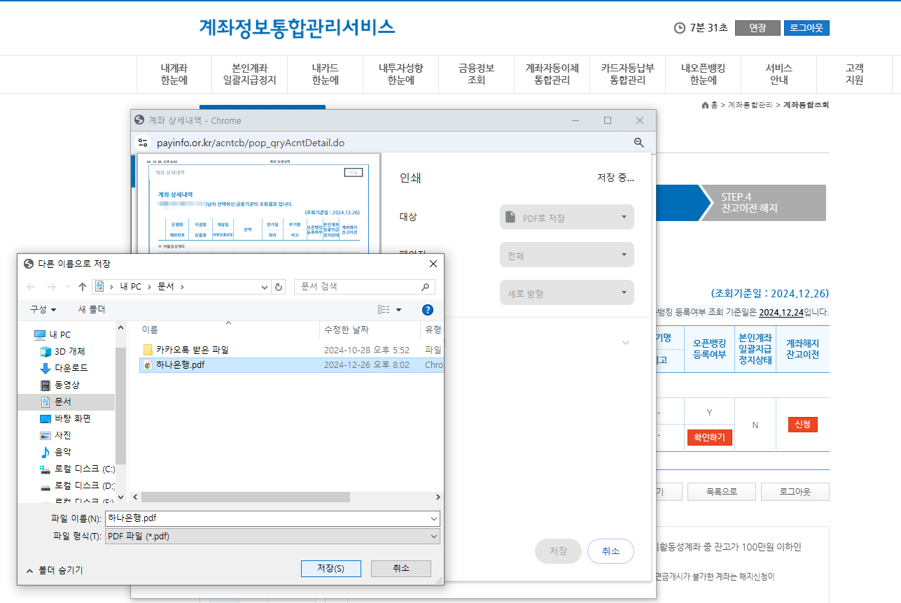 원하시는 폴더에 "은행별 계좌내역.pdf" 파일로 저장을 합니다.