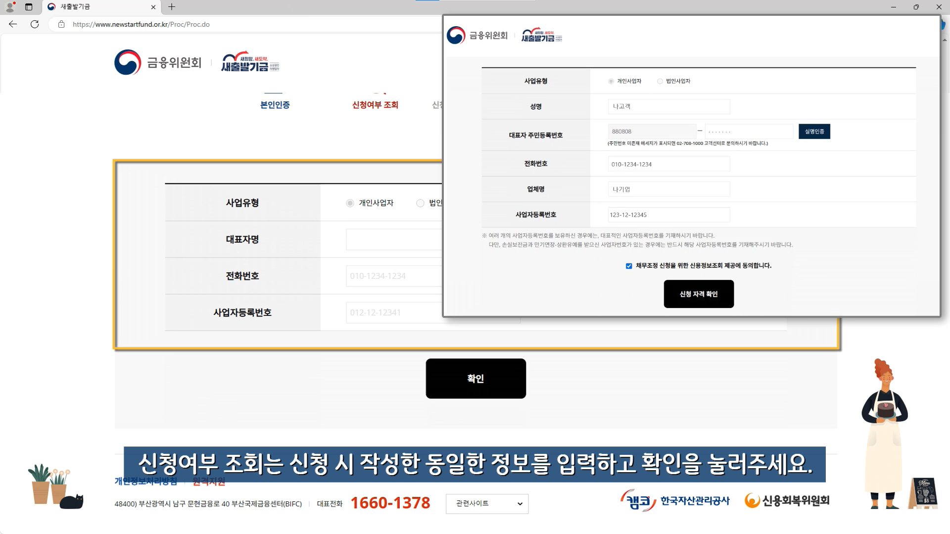 신청여부 조회는 신청시 작성한 동일한 정보를 입력하고 확인 버튼을 눌러주세요.