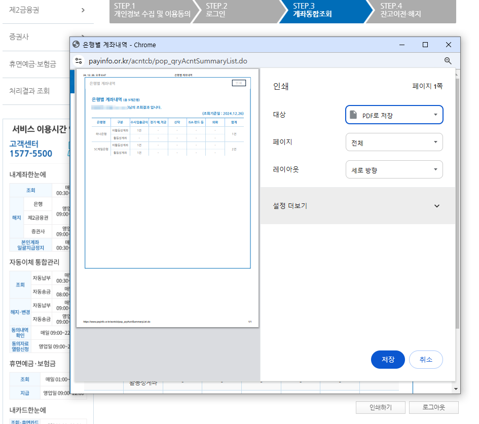 www.payinfo.or.kr 접속하여 계좌통합서비스 조회내역서 발급 및 금융자료 받는 방법.