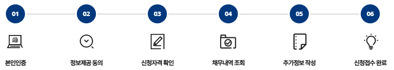 해당 입력란에 정보를 입력하고 맨 하단의 "채무조정신청을 위한 신용정보조회제공에 동의합니다." 를 체크 후 "신청자격확인" 버튼을 클릭하시면 됩니다.