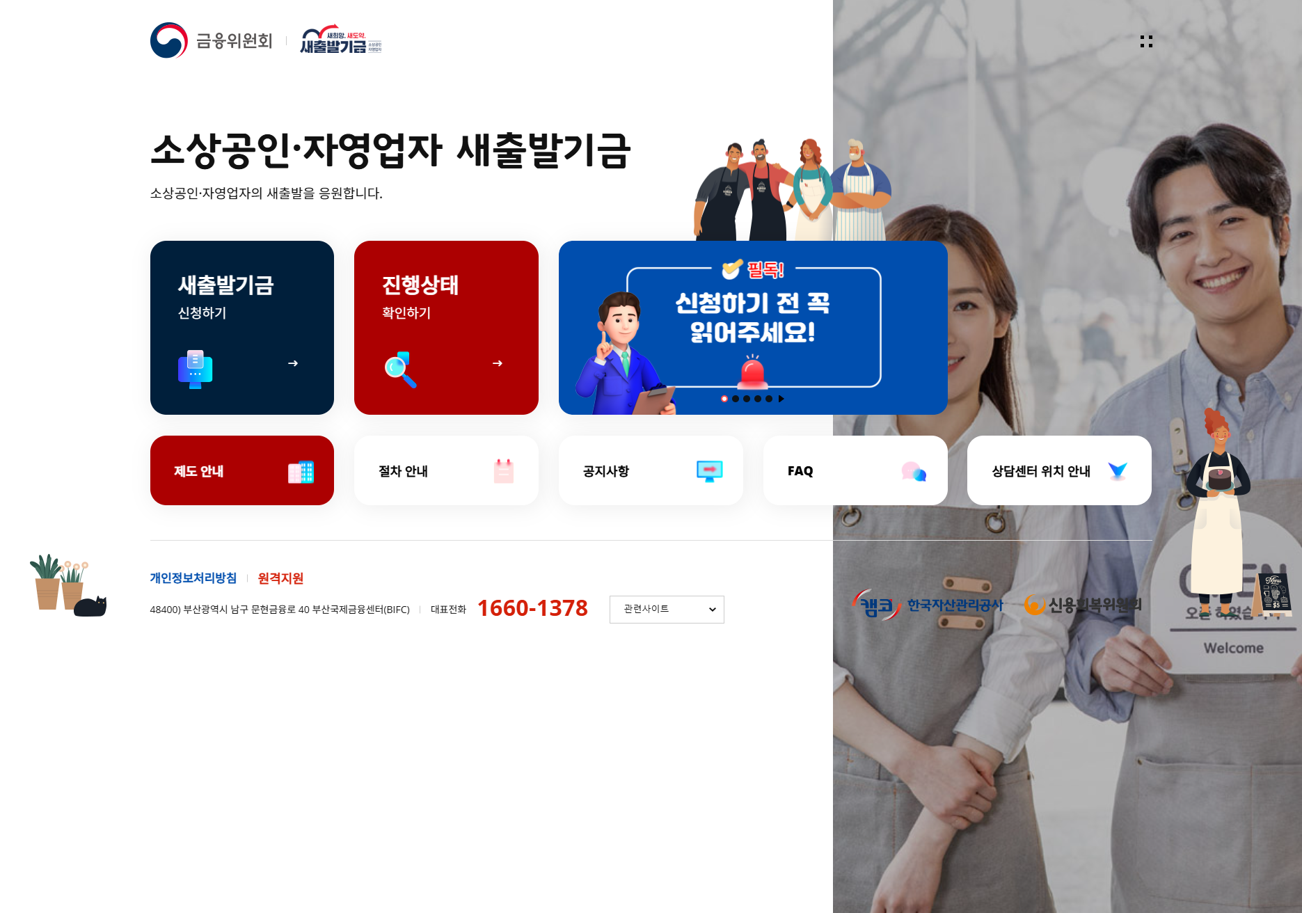 ◆ 사이트 접속 (https://www.newstartfund.or.kr/Index.do)