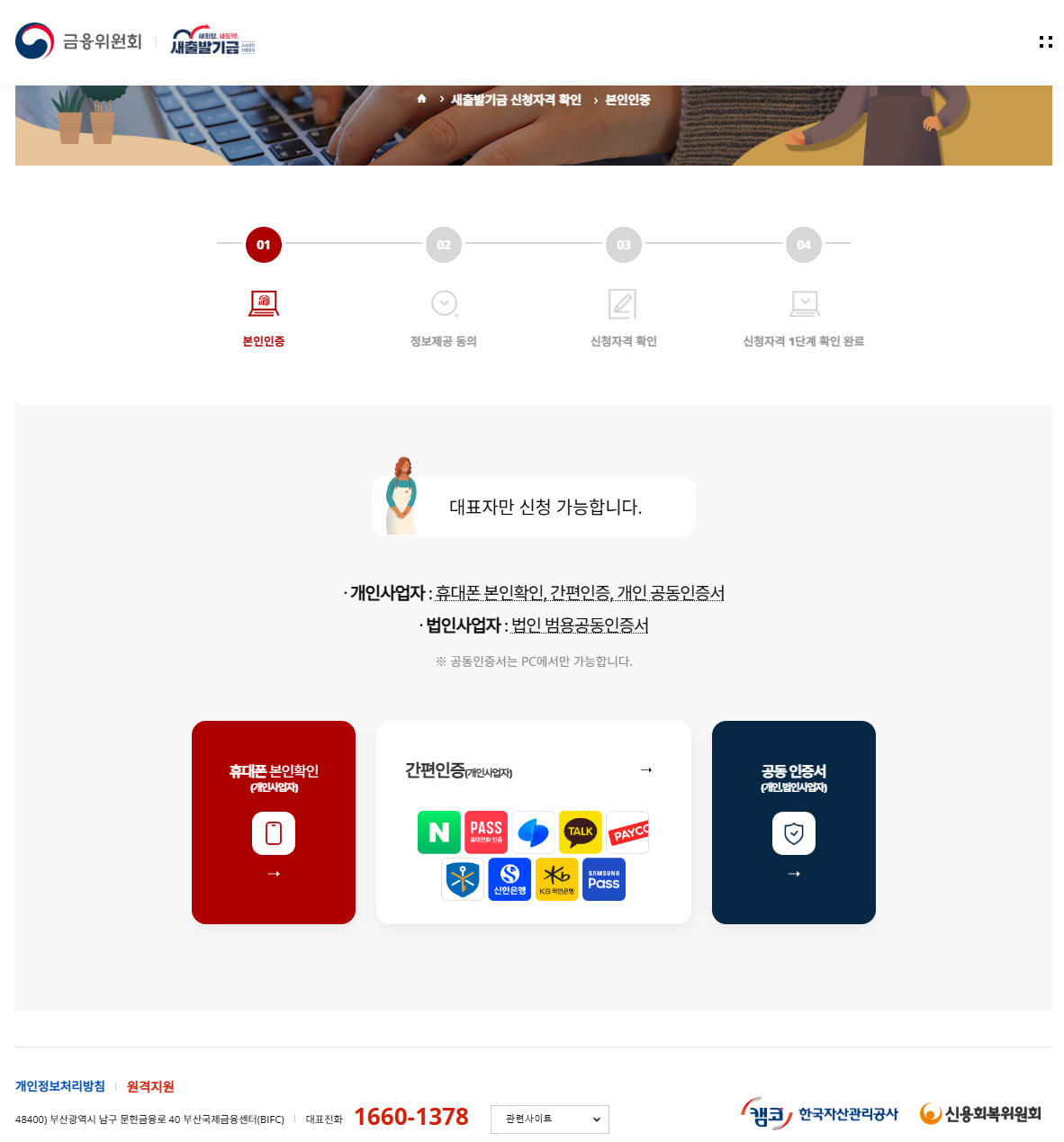 · 개인사업자 : 휴대폰 본인확인, 간편인증, 개인 공동인증서